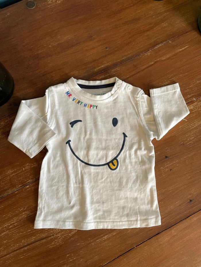 T-shirt manches longues blanc gémo 6 mois - photo numéro 1