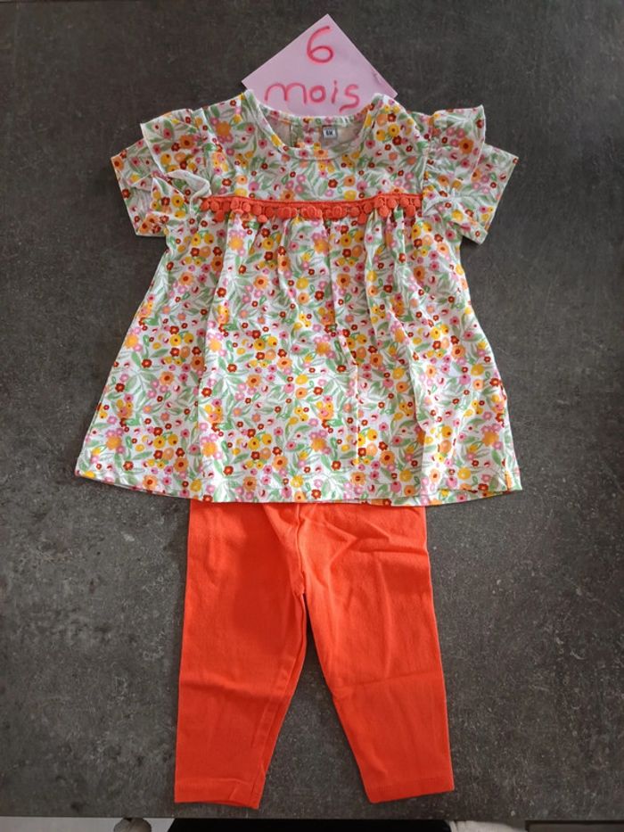 Ensemble été 2 pièces : - 1 tunique orange - 1 legging orange NEUF jamais porté ! Taille 6 mois #vetementbebefille6moisjustine182129
