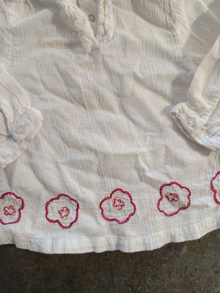 Blouse blanche en gaz de coton avec fleurs brodées en bas, Très bon état, peu porté ! Taille 6 mois #vetementbebefille6moisjustine182129