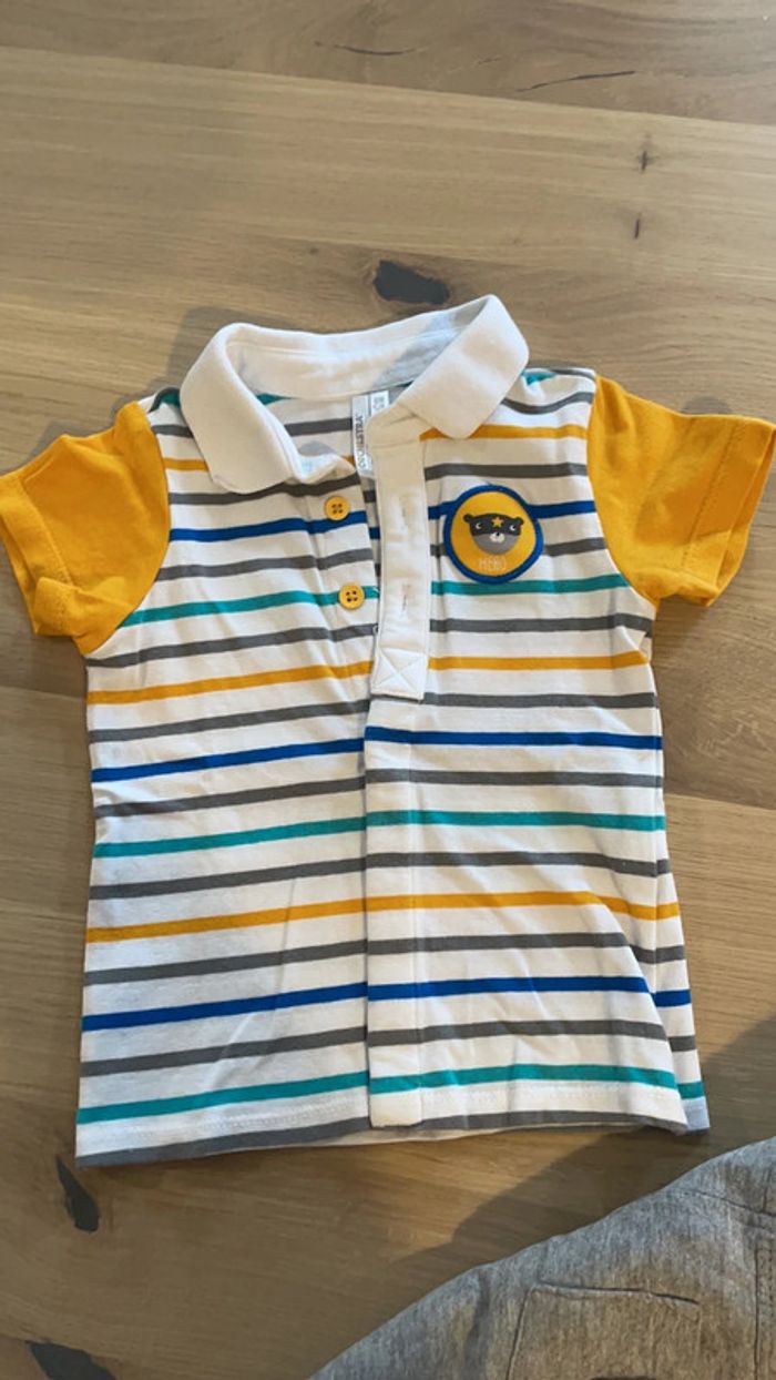 Ensemble short gris et polo blanc rayé orchestra 6 mois - photo numéro 2