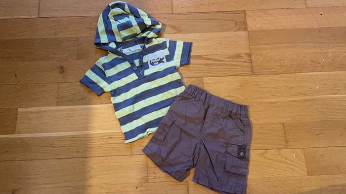 Ensemble été 3 mois marron et vert - photo numéro 1