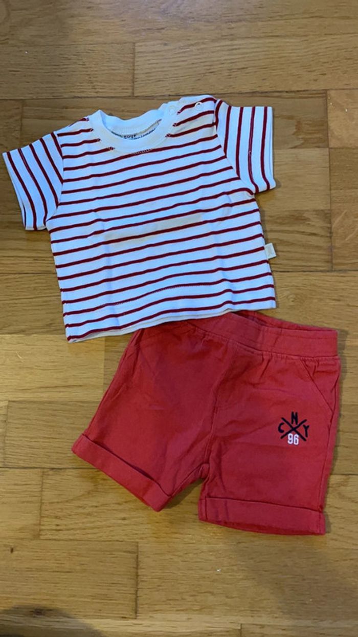 Ensemble été 3 mois rouge et blanc - photo numéro 1
