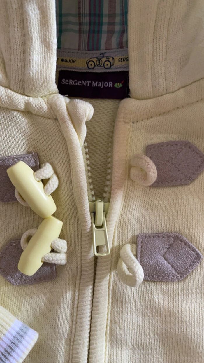 Sweat zippé jaune à capuche 9 mois sergent major - photo numéro 2