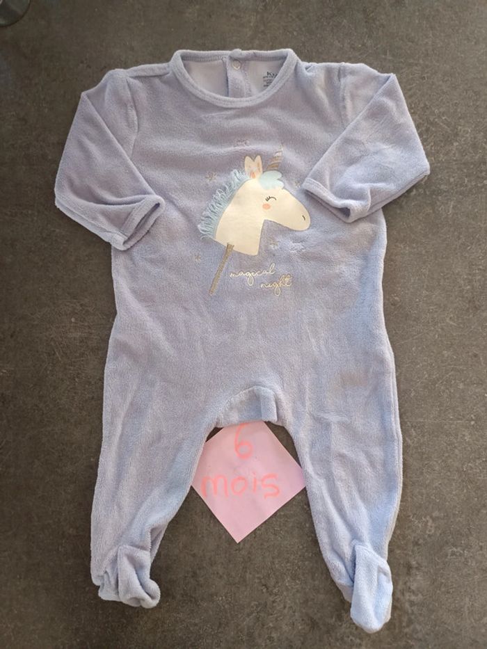 Pyjama en velours, Couleur lilas motif licorne 🦄 Très bon état Taille 6 mois #vetementbebefille6moisjustine182129