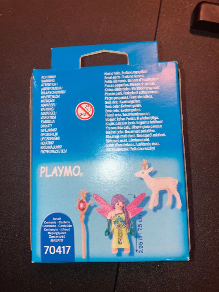 Playmobil 70417 - Fée avec Cerf magique (boîte un peu abimée sur le dessus) Dans sa boite, jamais ouvert, mais la boîte est un peu enfoncée sur le dessus. Je revends ma petite collection de Playmobil donc il y en a d'autres dans mon dressing =)