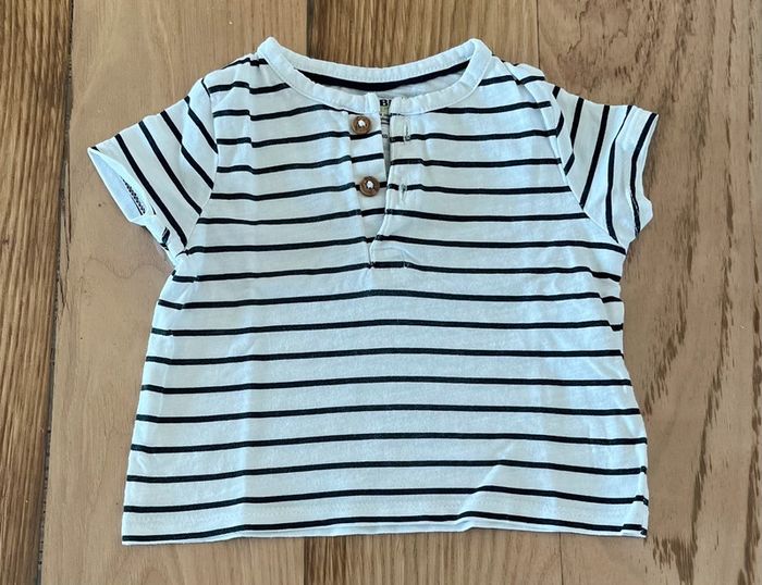 Tee-shirt blanc à rayures bleu marine Kiabi, taille 3 mois. Très bon état, classique et mignon. 🌿 Maison non fumeur. ➡️ Envoi rapide et soigné. 💶 Prix: 2 € (négociable dans la limite du raisonnable) #3moisgarçon #teeshrit #kiabi #3moisgarçondressingombelinedim