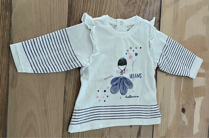 Haut manches longues Orchestra, taille 3 mois, rayé bleu marine avec petite fée imprimée. Très bon état, adorable et original. 🌿 Maison non fumeur. ➡️ Envoi rapide et soigné. 💶 Prix: 2 € (négociable dans la limite du raisonnable) #3moisfille #hautmancheslongues #orchestra #3moisfilledressingombelinedim