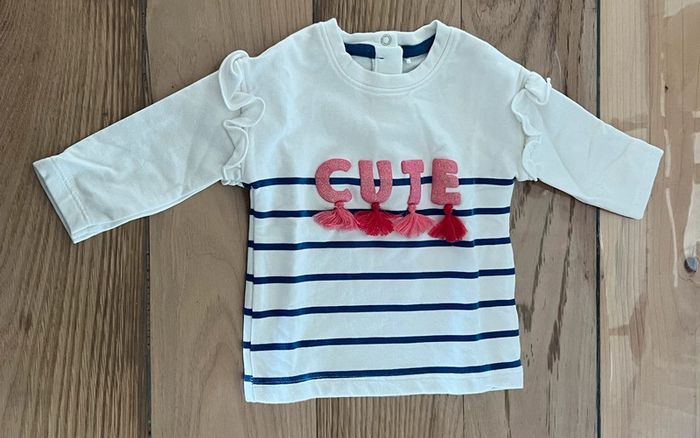 Haut manches longues Orchestra, taille 3 mois, blanc à rayures bleu marine. Très bon état, basique élégant. 🌿 Maison non fumeur. ➡️ Envoi rapide et soigné. 💶 Prix: 2 € (négociable dans la limite du raisonnable) #3moisfille #hautmancheslongues #orchestra #3moisfilledressingombelinedim