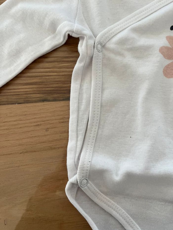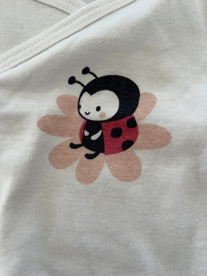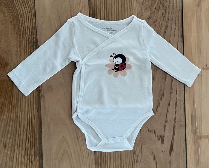 Body manches longues Du Pareil Au Même, taille 3 mois, blanc avec une coccinelle sur le devant.
