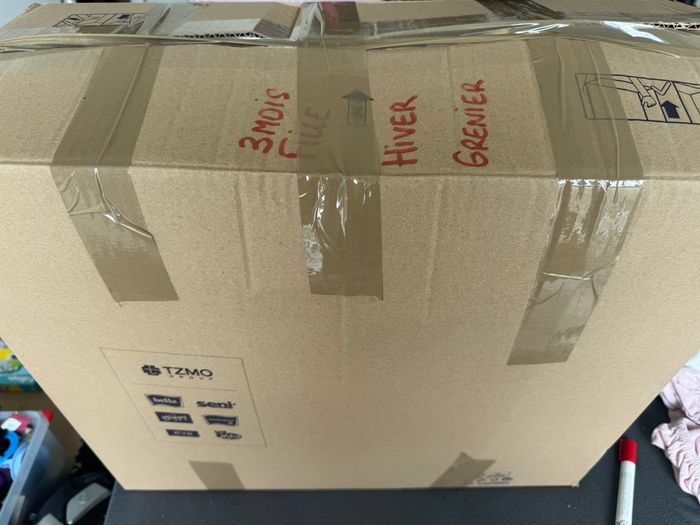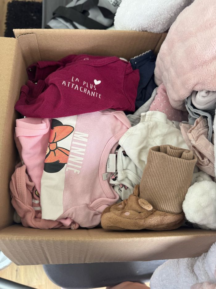 Je vends ce carton de vêtements pour bébé fille, taille 3 Mois, pour l’hiver.