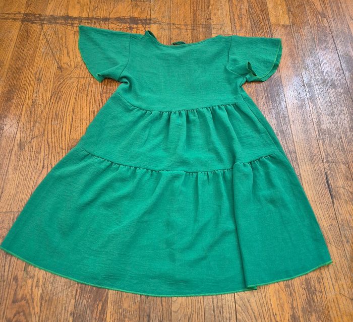 Robe été fille Couleur vert émeraude Manche courte Volanté Évasé en bas Taille 8 ans Très bon état #robefille #robefille8ans #fille8ans #etefille8ans #robevertefille
