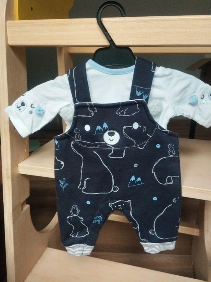 Ensemble salopette et t-shirt manches longues bébé garçon taille 1 mois - photo numéro 1