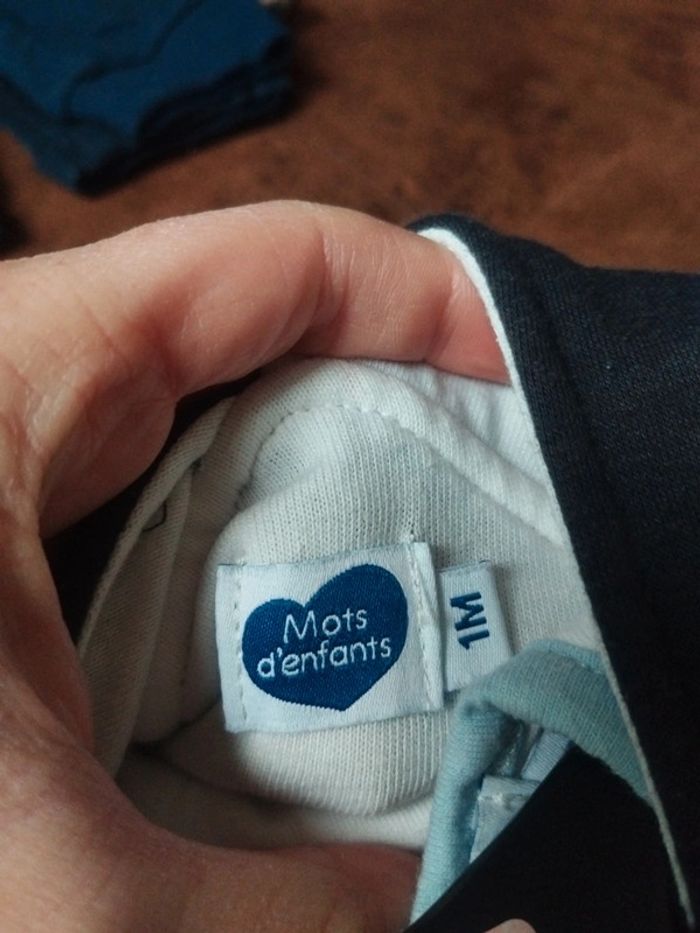 Ensemble comprenant une salopette à motifs et 1 t-shirt à manches longues assorti Taille 1 mois Mots d'enfants #mabiquette10garcon1mois