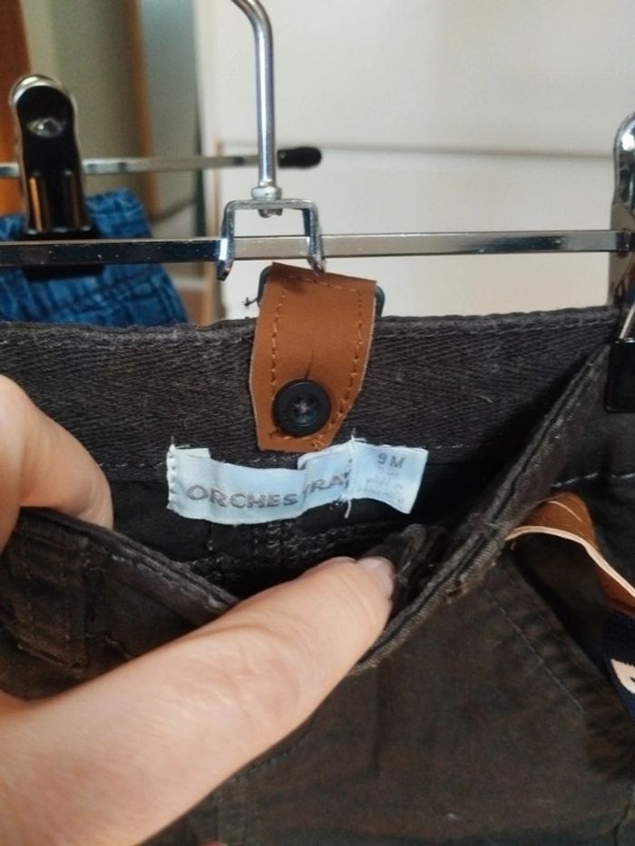 Lot de 2 jeans/pantalons 1 bleu et 1 gris avec bretelles Taille 9 mois Vertbaudet et Orchestra #mabiquette10garcon9mois