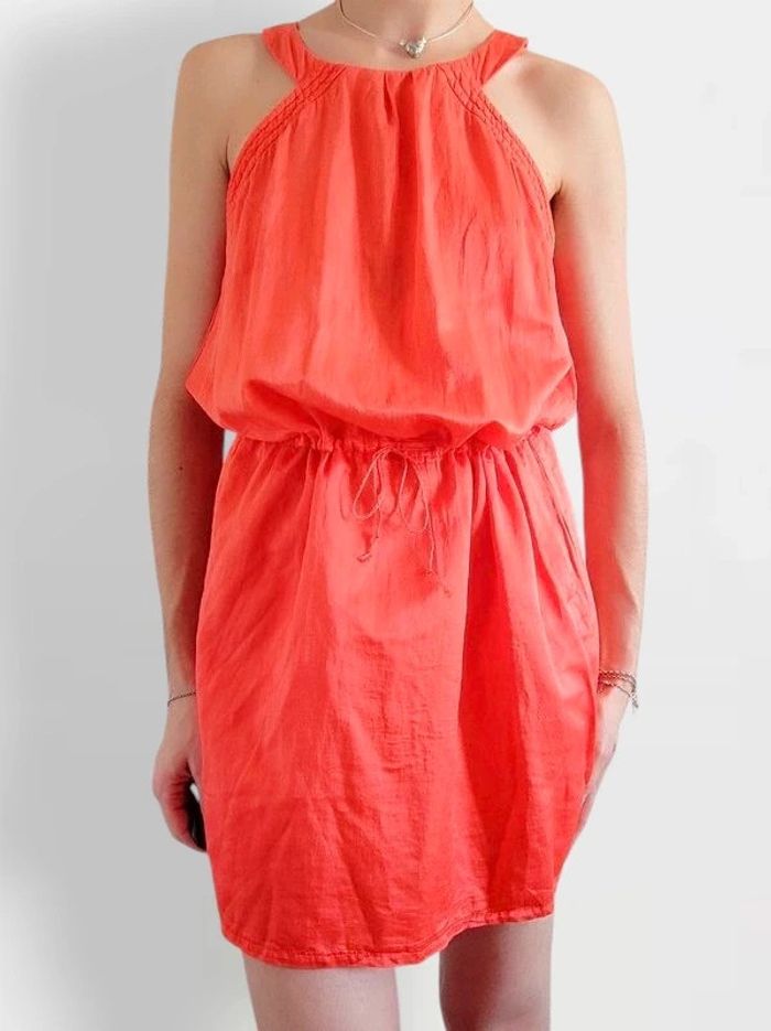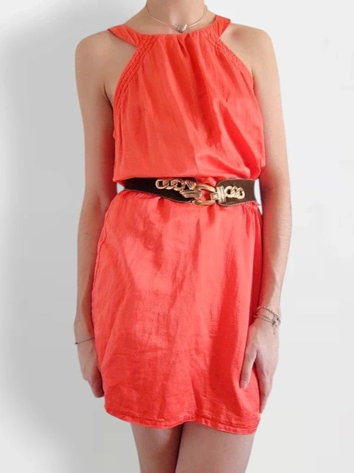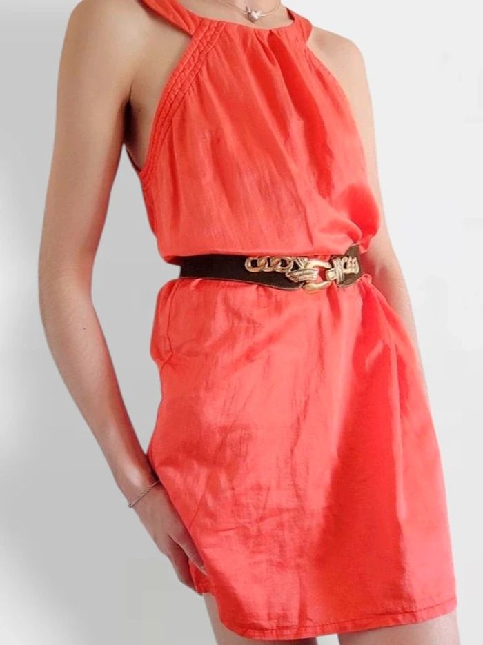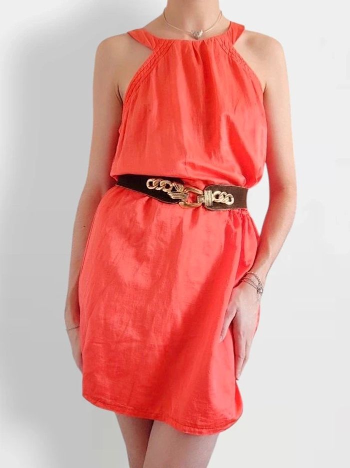 Robe midi d'été cintrée corail soie satinée vintage / One Step - 38/M à 40/L - photo numéro 1