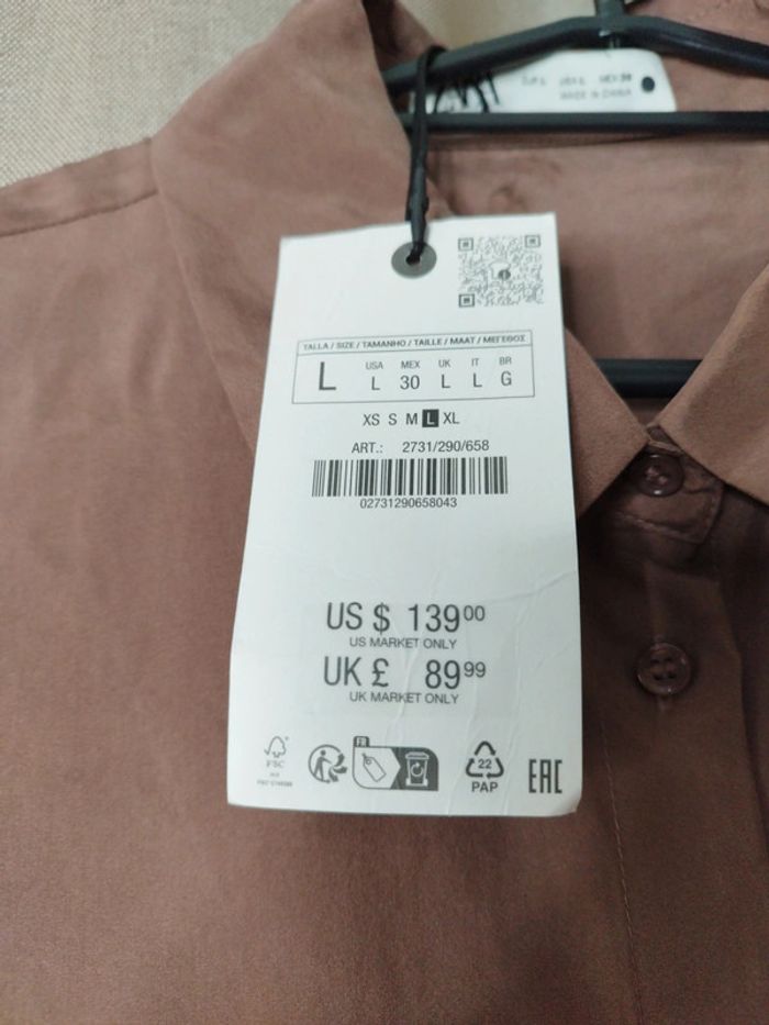 Chemise en soie Zara Taille L Neuf avec étiquette Marron