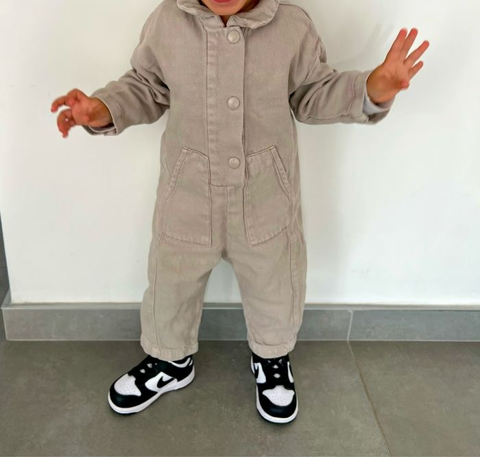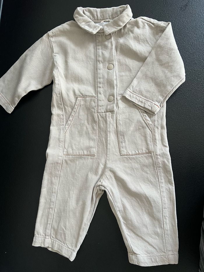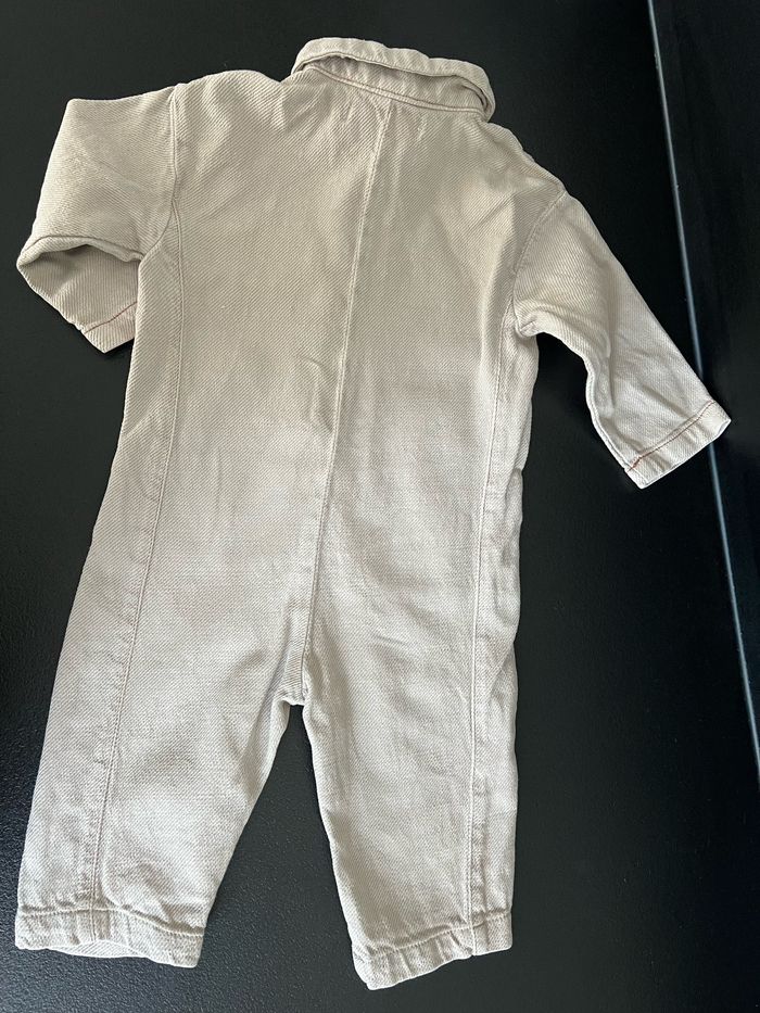 Combinaison jean bébé beige/gris Légère trace sur le bouton du haut