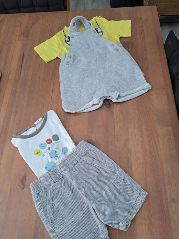 Salopette short grise et t shirt vert Short et t.shirt