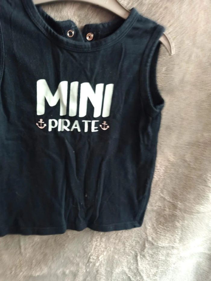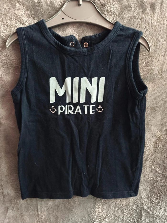 Débardeur sans manche de couleur noire avec inscription mini pirate en blanc de marque Kiabi taille 24 mois est à Neuf juste laver jamais mis #lutin51vetementsbebegarcon18mois #Kiabi #24mois#vetementgarçon #bébé#t-shirt #maillot #vêtements neuf #bonneoccase #été #débardeur