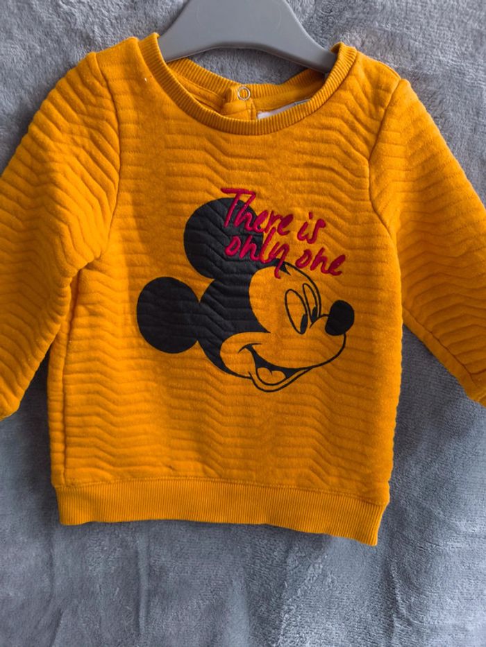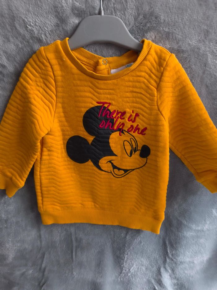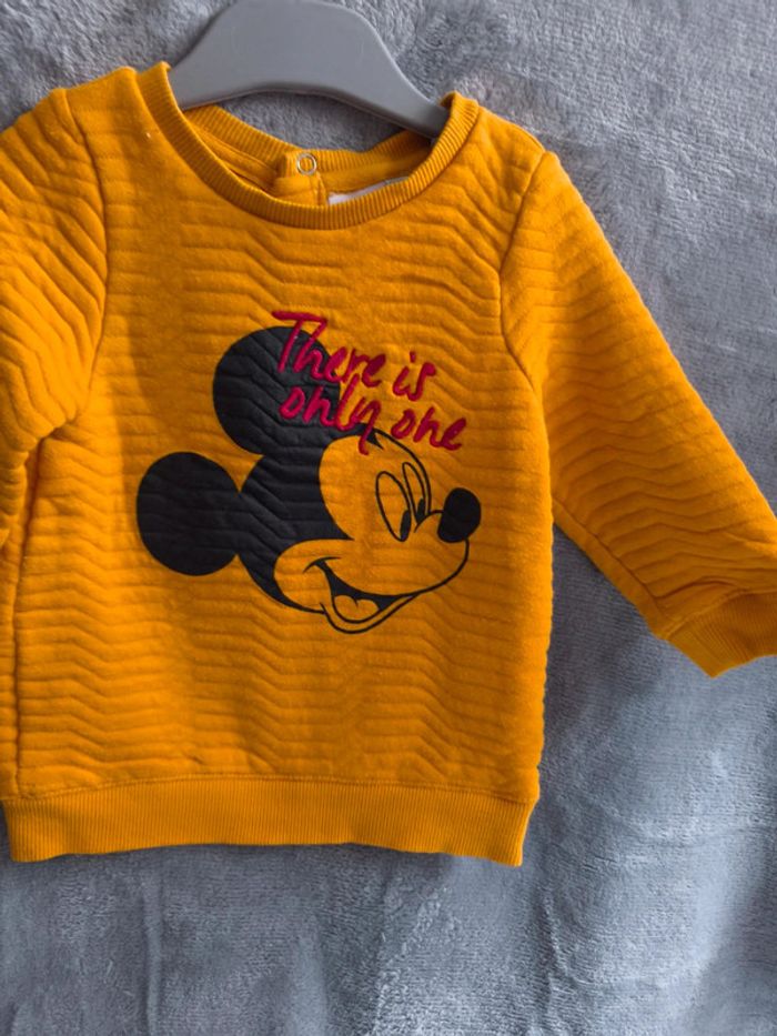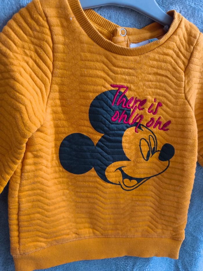 Pull mickey taille 18 mois en très bon état général couleur moutarde marque orchestra Disney