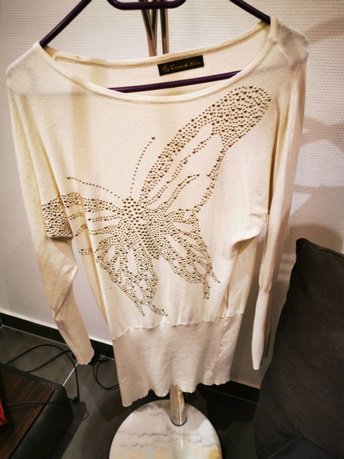 Blanc crème Dessin papillon aucun strass n'est manquant Taille unique convient 38 voir 40