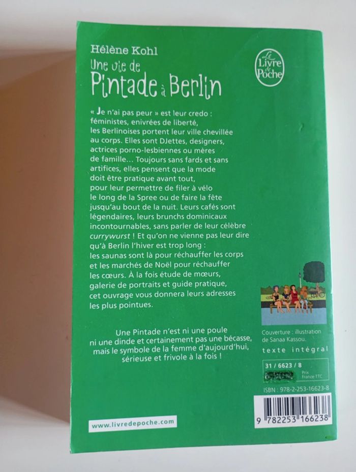 « Je n’ai pas peur » est leur credo : féministes, enivrées de liberté, les Berlinoises portent leur ville chevillée au corps. Elles sont DJettes, designers, actrices porno-lesbiennes ou mères de famille… Toujours sans fards et sans artifices, elles pensent que la mode doit être pratique avant tout, pour leur permettre de filer à vélo le long de la Spree ou de faire la fête jusqu’au bout de la nuit. Leurs cafés sont légendaires, leurs brunchs dominicaux incontournables, sans parler de leur célèbre currywurst ! Et qu’on ne vienne pas leur dire qu’à Berlin l’hiver est trop long : les saunas sont là pour réchauffer les corps et les marchés de Noël pour réchauffer les coeurs. À la fois étude de moeurs, galerie de portraits et guide pratique, cet ouvrage vous donnera leurs adresses les plus pointues. Une Pintade n’est ni une poule ni une dinde et certainement pas une bécasse, mais le symbole de la femme d’aujourd’hui, sérieuse et frivole à la fois ! Éditeur ‏ : ‎ Le Livre de Poche 384 pages Dimensions ‏ : ‎ 11 x 1.6 x 18 cm Livre en très bon état Je vends un autre livre de la même collection #phil_peg_pintades #pintades #berlin