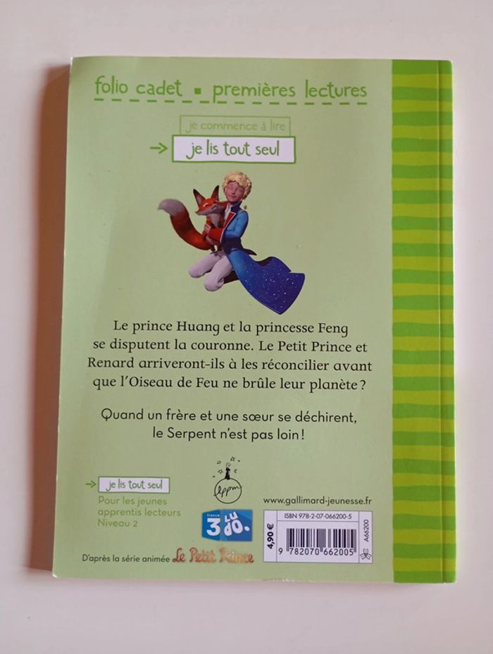Le prince Huang et la princesse Feng se disputent la couronne. Le Petit Prince et Renard arriveront-ils à les réconcilier avant que l'oiseau de Feu ne brûle leur planète? Quand un frère et une soeur se déchirent, le Serpent n'est pas loin! Éditeur ‏ : ‎ Gallimard 48 pages Âge de lecture ‏ : ‎ 6 - 7 ans Dimensions ‏ : ‎ 14.2 x 0.5 x 19.5 cm Livre en très bon état Je vends d'autres livres premières lectures #phil_peg_premièreslectures ou du petit prince #phil_peg_petitprince #apprentissagelecture #premièreslectures #petitprince