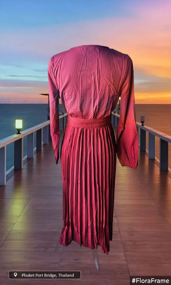 Robe longue plissée bordeau avec sa ceinture - photo numéro 1