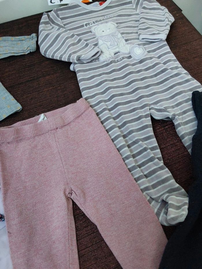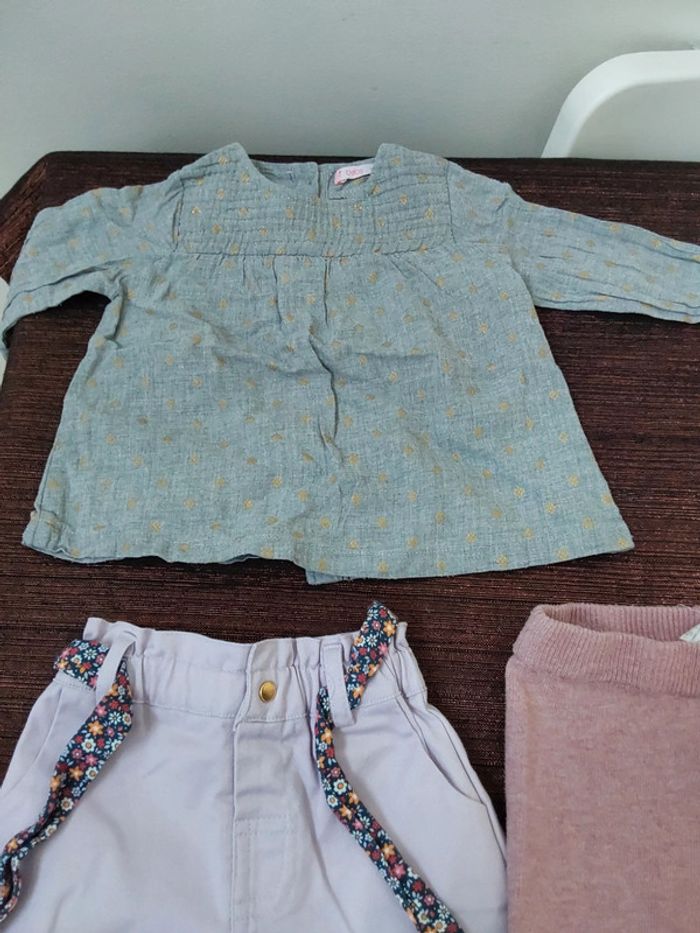 2 pantalons, 1 blouse, 1 pyjama velour et 1 robe