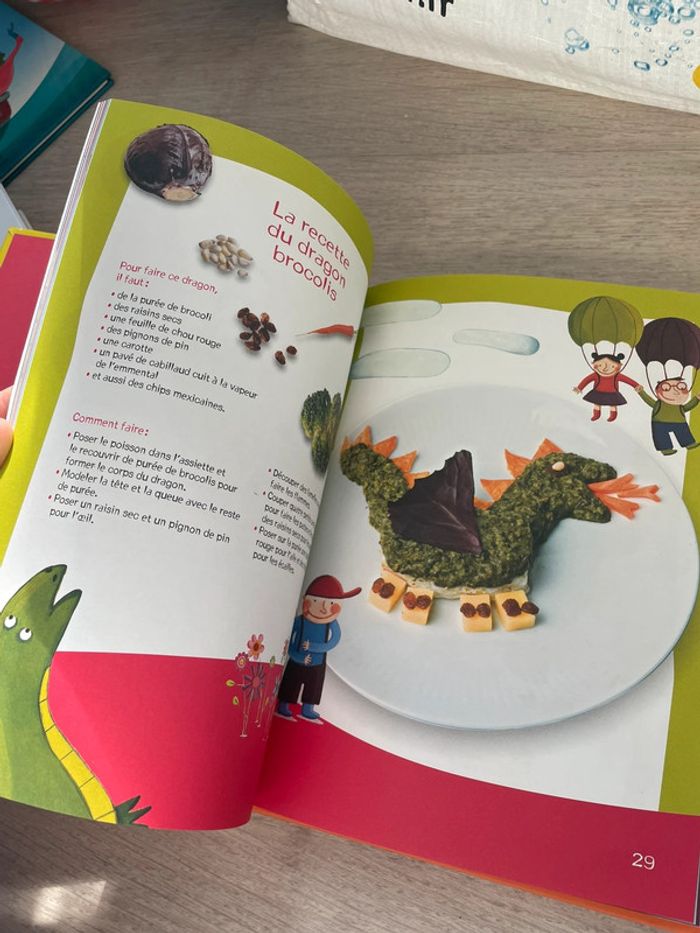Idéal pour les petits C’est sympa de préparer les repas sous forme d’amusement Jamais utilisé juste un page à la fin qui était plié
