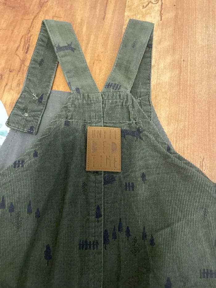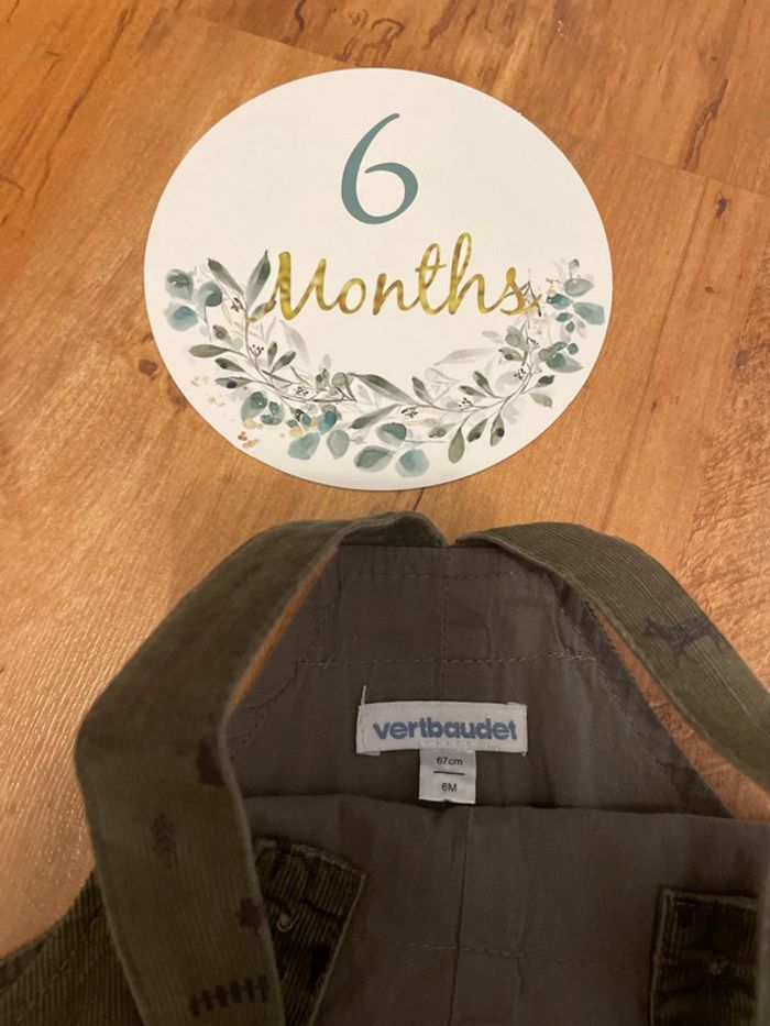 Salopette velours kaki motif forêt Taille 6 mois Jamais porté juste lavé Marque Vertbaudet N’hésitez pas à faire des lots 🍀