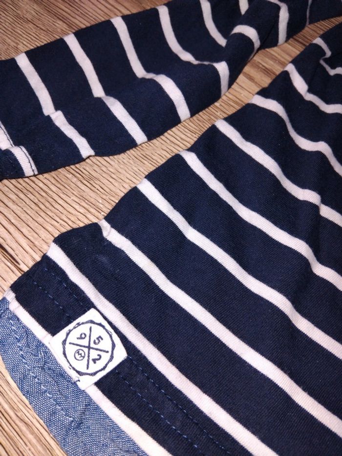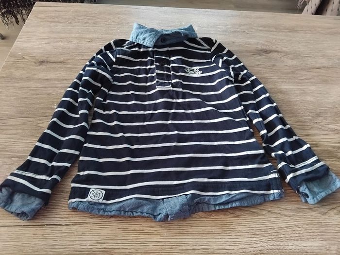Bonjour, je vends ce polo rayé marine et beige de la marque C&A taille 3ans en très bon état. Lavé maison non fumeur.