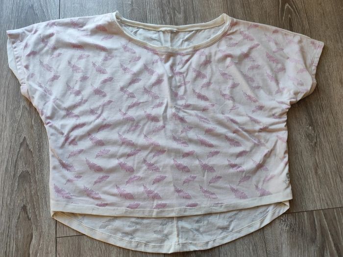 Court et ample Acheté chez Decathlon Étiquette coupée mais c'est un 40 Il y avait une tâche que j'ai réussi à faire partir, mais je préfère le signaler