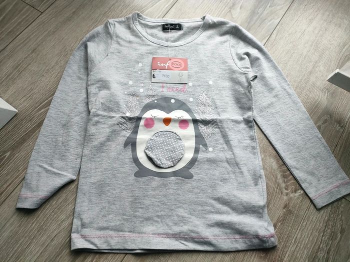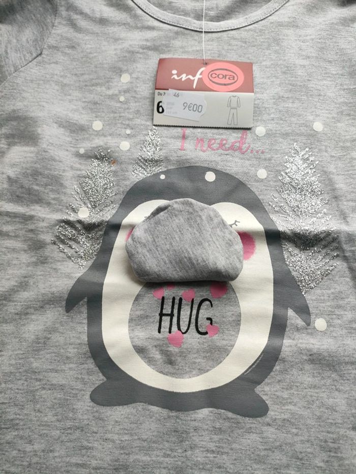 Gris, motif pingouin, taille 6 ans