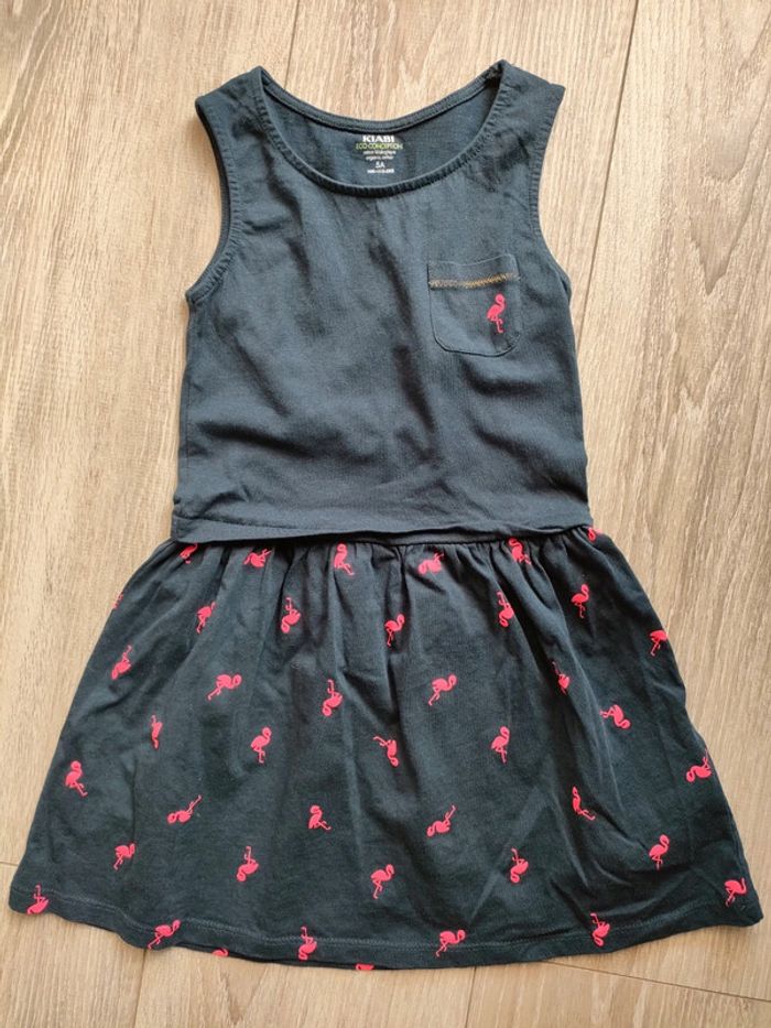 5 ans, Kiabi, portée 3 fois, bleu marine motif flamant rose