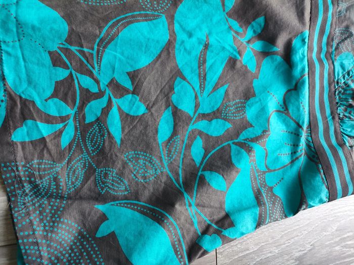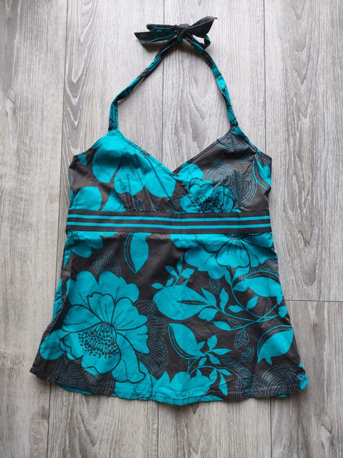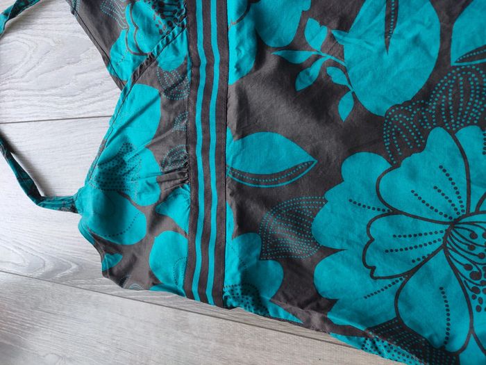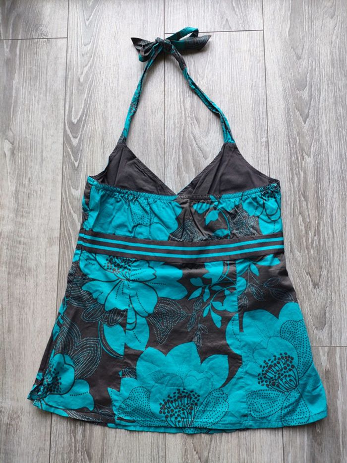 Taille 42, Esprit, porté une fois peut être A l'arrière il y a une banque de 'silocone' qui colle un peu a la peau, pour maintenir le tout Se noue a la nuque Le haut du dos est nu