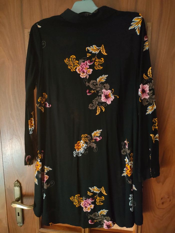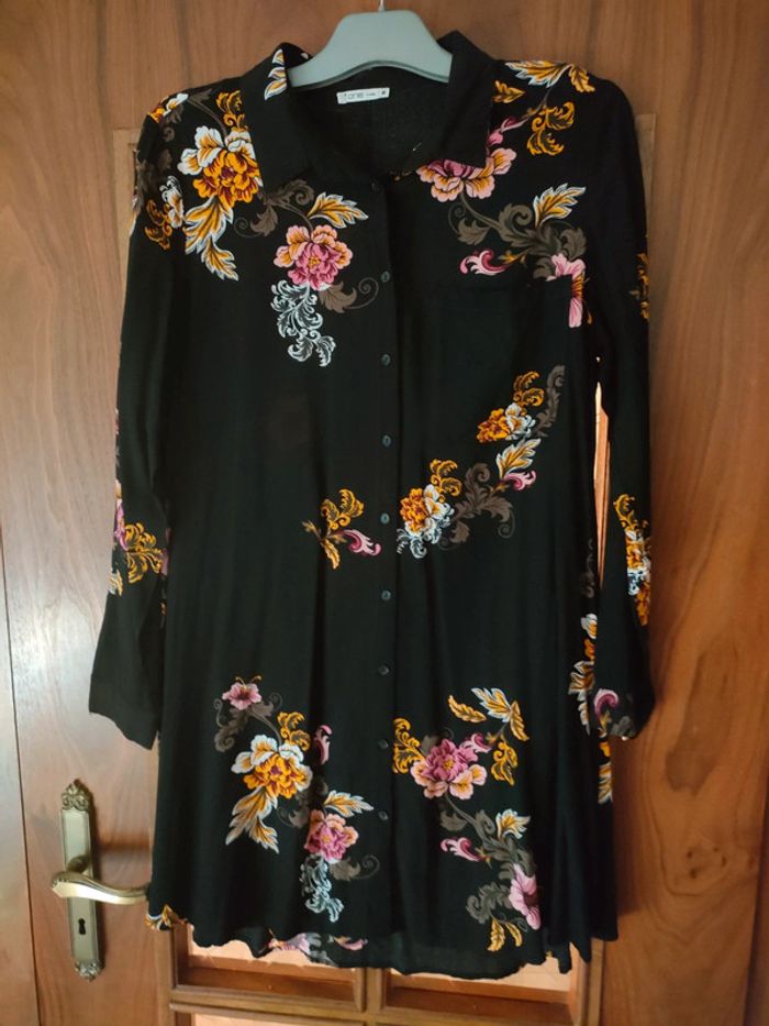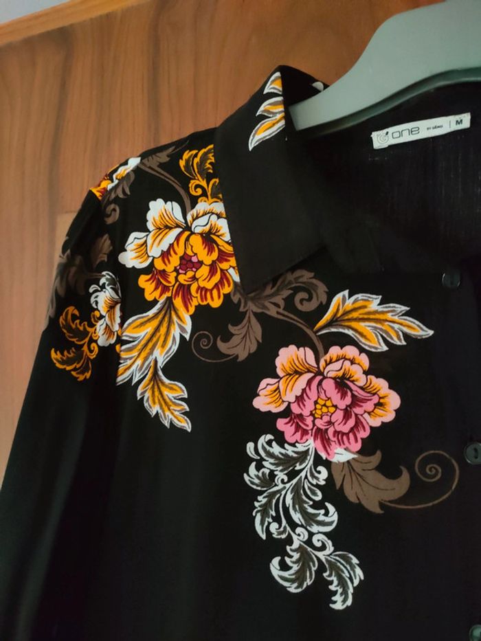 Effet oversize, noire avec motifs de fleurs anciennes, taille M, mais très large