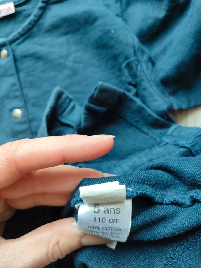 Bleu foncé, taille 5 ans Beaucoup porté, il est délavé