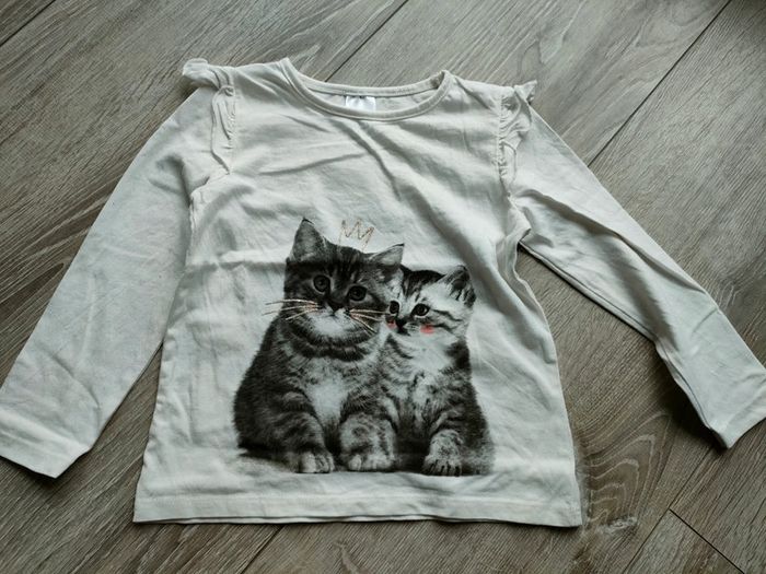Palomino, taille 104, soit 4 ans. Blanc motif chats. Porté une fois