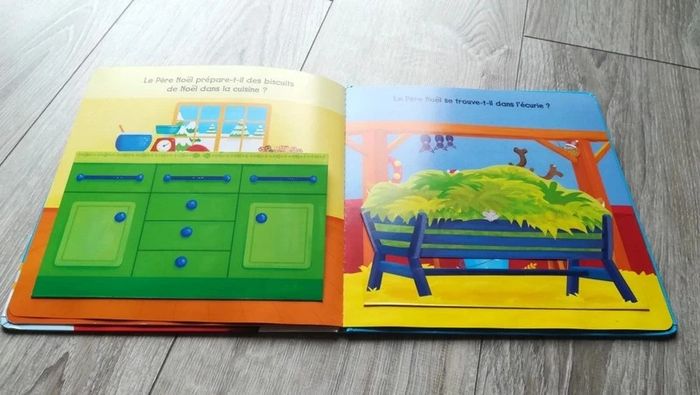 Ou est le père Noël? Peu utilisé mais un peu froissé par endroits Petite mention de la personne qui nous l'a offert