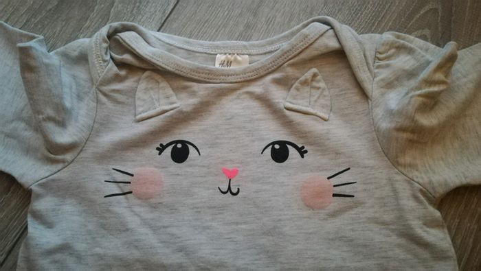 Porté une fois Taille grand Avec tête de chat Taille 12-18mois.. Pour moi cela correspond plus à un 24 mois..