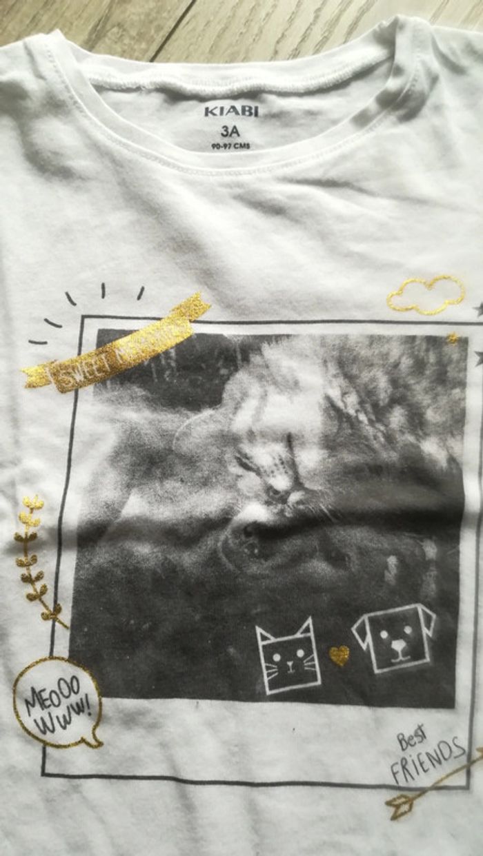 Blanc avec motif photo de chat Un peu de doré Jamais porté