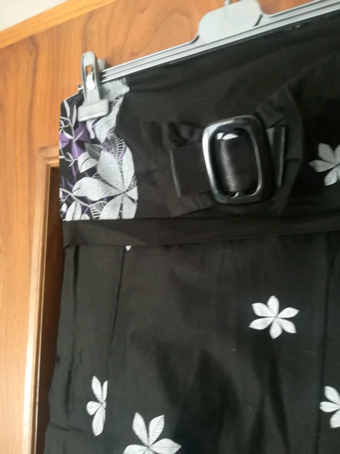 Motif fleurs blanc et violet sur fond noir Portée une fois pour un mariage