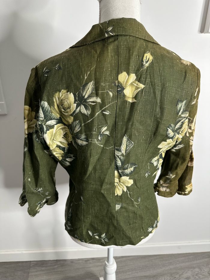 Blouse à fleurs en lin kaki et jaune Vintage T42 XL - photo numéro 6