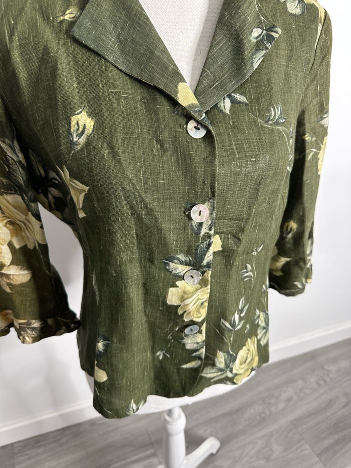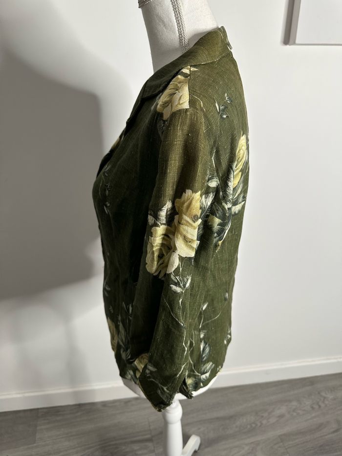 Blouse à fleurs en lin kaki et jaune Vintage T42 XL - photo numéro 7