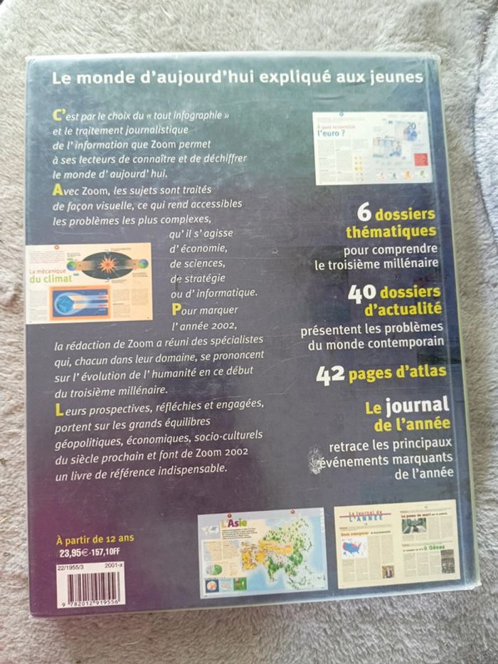 Livre zoom 2002 Le monde d'aujourd'hui expliqué aux jeunes Quelques pages sont un peu abîmées, sinon le livre est en très bon état. Livre couvert #emiliestomlivreenfant