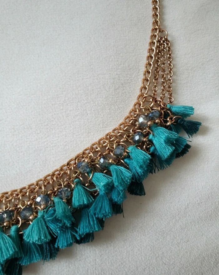 Collier avec pompon bleue #melii80_accessoires #collier #bijoux #collierpompom #collierfantaisie #collierfemme