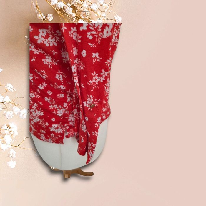 Blouse rouge à motifs fleuris, manches 3/4. Coupe fluide et légère, idéale pour le printemps, l'été ou la mi-saison. Style féminin et coloré, parfait avec un jean, une jupe ou un short. En très bon état, portée une ou deux fois. ➡️ Envoie rapide #blouserouge#fleurie #manches34 #modefemme#lookprintemps #topfemme #tenuefemme