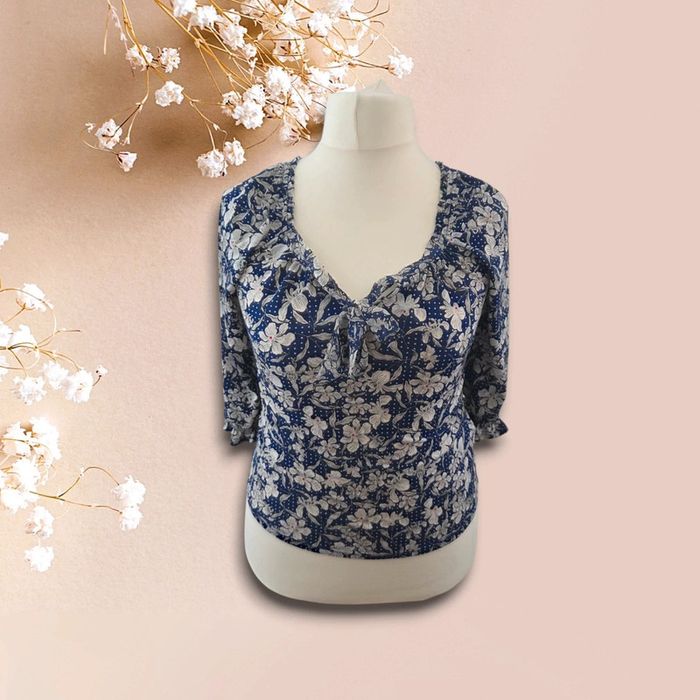 Très jolie blouse à motif fleuri, manches 3/4, coupe fluide et féminine. Parfaite pour le printemps/été. Taille : 1 Couleurs : bleu Envoi rapide Me contacter en message privé pour plus d’infos . #blousefemme #vetementsfemme #vêtementsprintemps