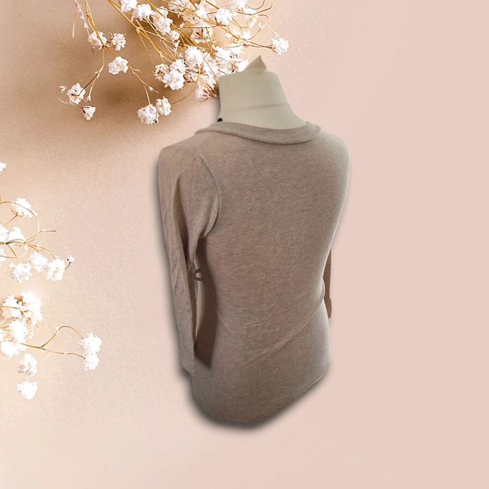 Robe en laine beige avec col V dentelle – Taille s - photo numéro 4